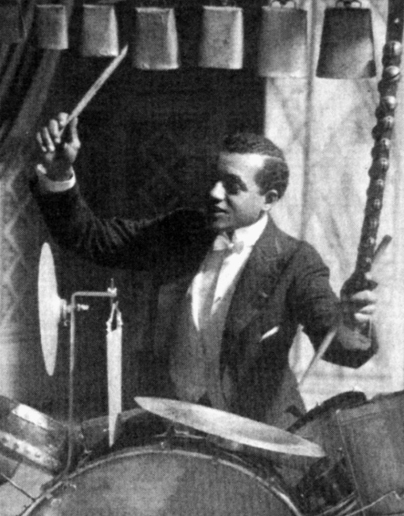 With the arrival of the ODJB, we’ve now entered the Jazz Age proper, and we’re in Fabulous Fives country. Like Sbarbaro, their drummers had begun as ragtime players, and like him they started off by clanging Chinese cymbals at every opportunity.