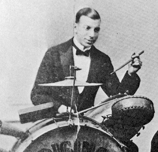 Tony Sbarbaro of the ODJB, cymbal mounted the right way up – or is it?